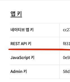 2. 추가한 애플리케이션에 들어가서 앱키 받아놓기(앱키는 노출되지 않게 주의해 주세요!)