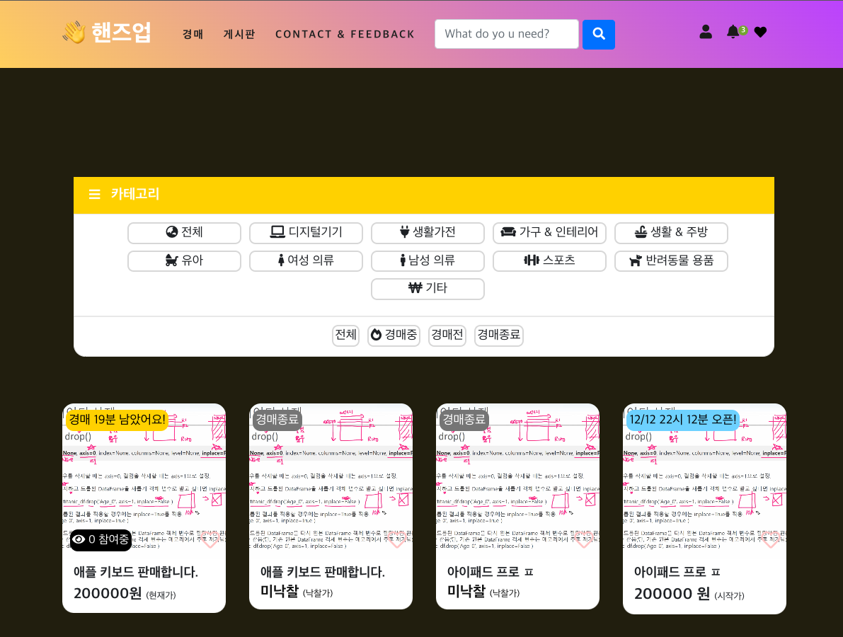 프로젝트 마무리 단계에 있어서 스타일이나 자잘한 수정을 보고 있다. 디자인에 감각이 없기도하고 JS를 검색을 통해서 바로바로 적용을 하면서 하다보니 코드가 정갈하지 않은 점과 백엔드에 집중하지 못하는 점이 아쉽지만, 출시할 생각에 모든 재미있다.